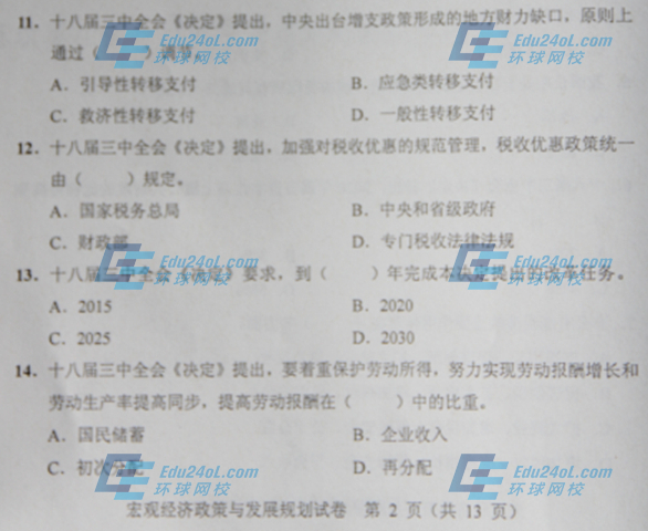 2014年咨詢工程師《政策與規劃》真題(環球首發)