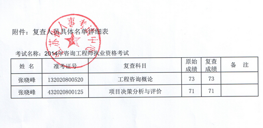 2014年蘇州咨詢工程師考試省中心成績(jī)復(fù)查結(jié)果