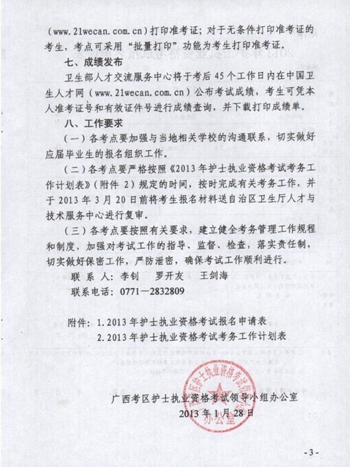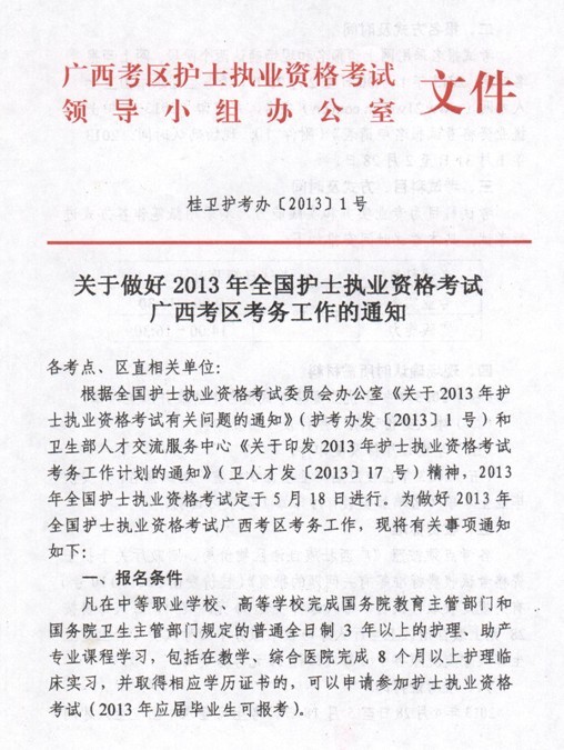 2013年護士執(zhí)業(yè)資格廣西考區(qū)考務(wù)工作通知