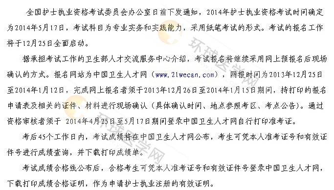 2014護(hù)士執(zhí)業(yè)資格考試報(bào)名:12月25日開始