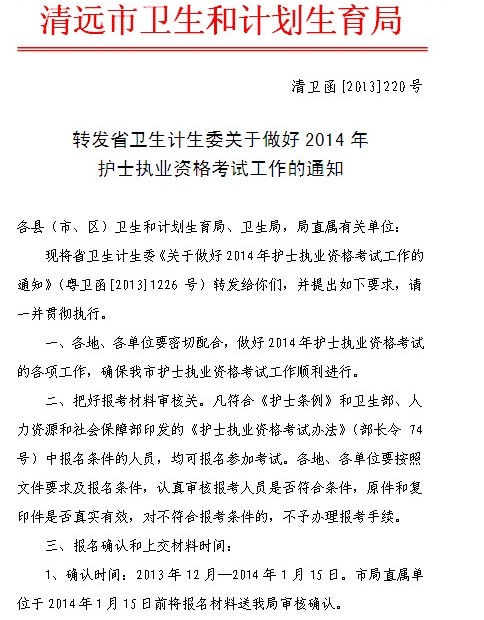 摘要 廣東清遠2014年執業護士考試現場確認時間為2013年12月至2014年1月15日,請廣大考生注意!