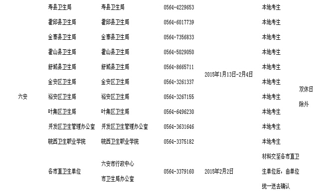 2015六安護士資格考試現場確認點聯系方式