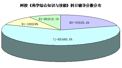 2007年執業藥師《藥學綜合知識與技能》科目合格標準是60分,環球網校該科目學員考試成績分布為:60-70分占20.4%,71-80分占60.5%,81-90占10.1%,91-100分為9%。