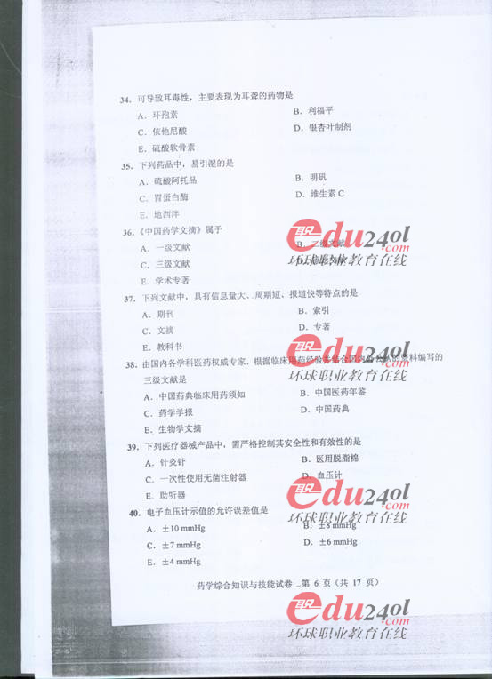 2008年藥學(xué)綜合知識與技能考試真題全套