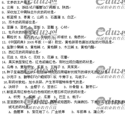 2008年中藥學(xué)專業(yè)知識二考試真題全套