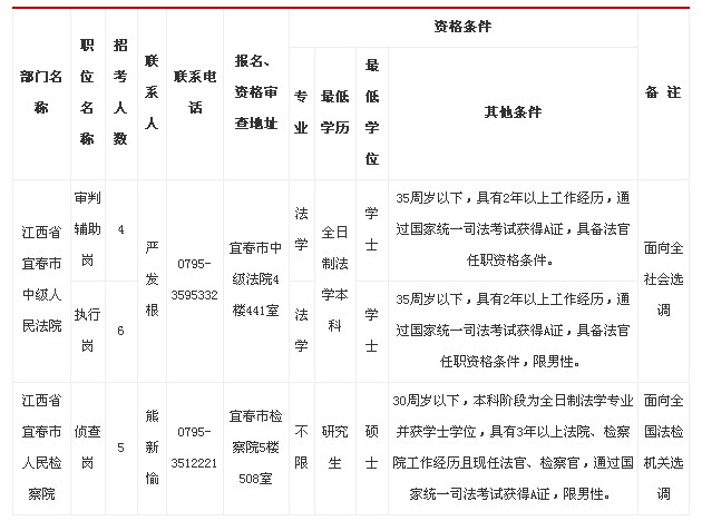 3、報名時應呈交的資料:《選調公務員報名表》(可從江西省宜春市人力資源和社會保障局門戶網站下載)、身份證(原件、復印件)、學歷證明(原件、復印件)、工作證(原件、復印件)、近期免冠1寸照片3張、公務員登記表復印件、法律職務任命書復印件或國家司法部頒發的“法律職業資格證書”(原件、復印件)。