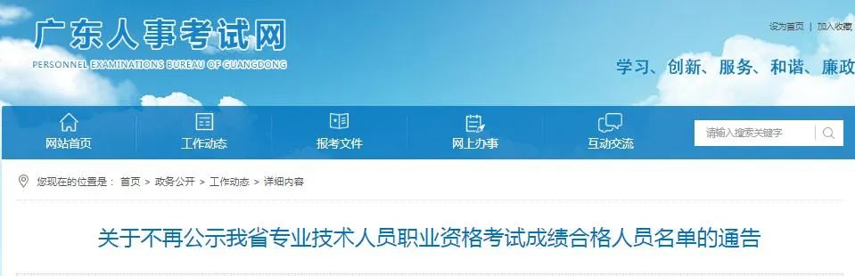 "自2025年9月起,對負(fù)責(zé)報(bào)名相關(guān)工作的專業(yè)技術(shù)人員職業(yè)資格考試項(xiàng)目的全科成績合格人員名單不再進(jìn)行公示。"