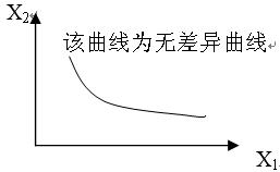 無差異曲線是一條表示能夠給消費者帶來相同滿足程度的兩種商品的所有組合的曲線,在這條曲線上的所有各點的兩種商品組合帶給消費者的滿足程度是完全相同的,消費者對這條曲線上各個點的偏好程度是無差異的。如圖1-7