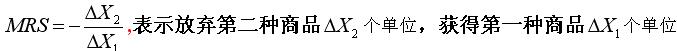 商品邊際替代率是指在效用水平不變的條件下,消費者增加一單位某商品時必須放棄的另一種商品的數量。