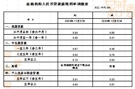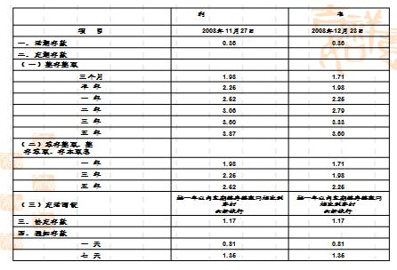 金融機(jī)構(gòu)人民幣存款基準(zhǔn)利率調(diào)整表