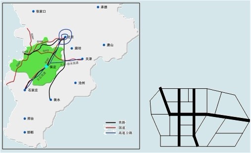 北京至保定之間的綜合運輸網 網絡的層次結構示意圖