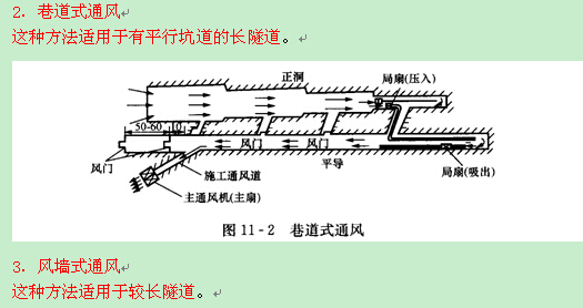 風管式通風的優點是設備簡單、布置靈活、易于拆裝,故為一般隧道施工采用。