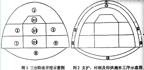 1.順序5-6-3-4-9-10-7-8,右側圍巖較左側更差,先開挖。13-12-14,軟弱圍巖,盡快施工二襯,穩定拱部。