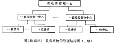 省級收費系統管理體制一般分為三級:省收費結算中心、路段收費分中心和收費站。三級管理層次結構如圖 1B415O31 所示。