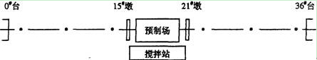 項目部為了降低成本,制定了先進的、經濟合理的施工方案。項目部的預制場和混凝土攪拌站布置示意圖如下:
