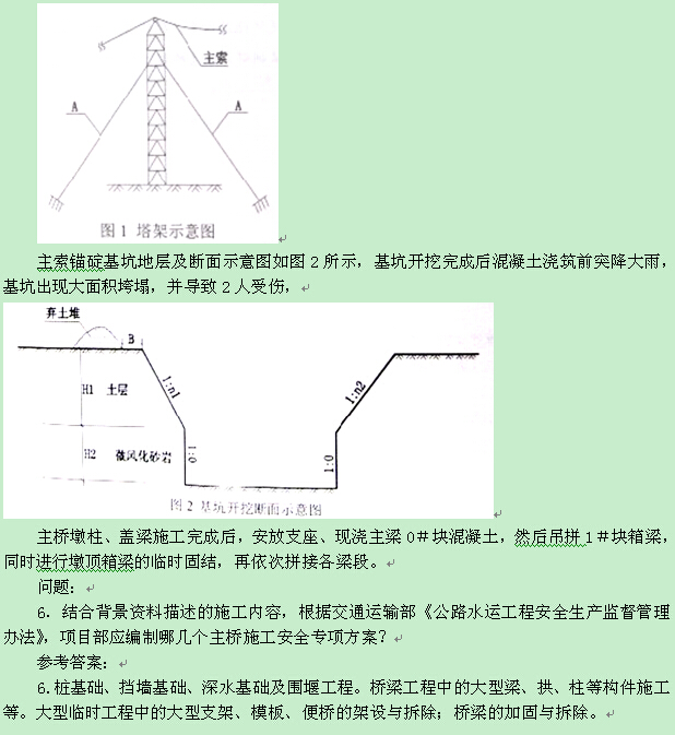 1、“由專職安全員對隧道的安全生產全面負責”錯誤,應由項目經理對隧道的安全生產全面負責。“項目部招聘了6名員工,并立即由專職安全員進行培訓,考核合格后安排從事爆破作業”錯誤,應由經過專業培訓且持有爆破操作合格證的專業人員從事爆破作業。